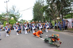 Sepanjang jalan, masyarakat tumpah ruah menyaksikan atraksi Drumband dari Taruna tingkat III AAU ini sembari mengabadikan momen tersebut dengan kamera ponselnya masing-masing.