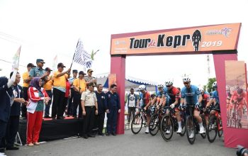 Kepala BP Batam, Amsakar Achmad, dan Wakil Kepala BP Batam, Li Claudia Chandra, membuka sekaligus melepas peserta dari garis start di Nagoya Citywalk.