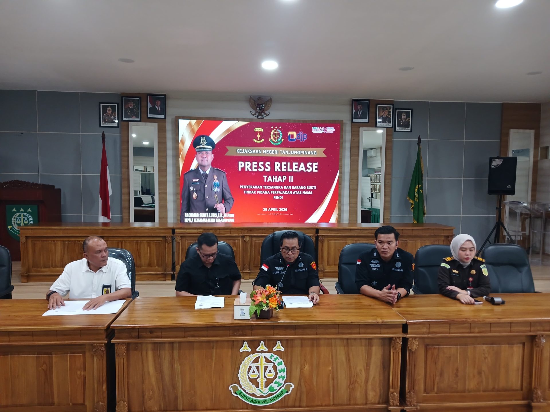Zonakepri.com – Kejaksaan Negeri Tanjungpinang menggelar konferensi pers terkait penanganan tindak pidana korupsi di bidang perpajakan pada Selasa (28/04/2026).