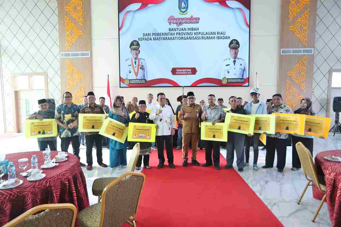 Zonakepri.com– Gubernur Kepri Ansar Ahmad bersama Wali Kota Tanjungpinang Lis Darmansyah menyerahkan bantuan hibah barang melalui APBD-P 2025 kepada RT, lembaga kemasyarakatan, dan rumah ibadah di Tanjungpinang, Bintan, dan Karimun, Selasa (9/12) di Gedung Dekranasda Kepri.