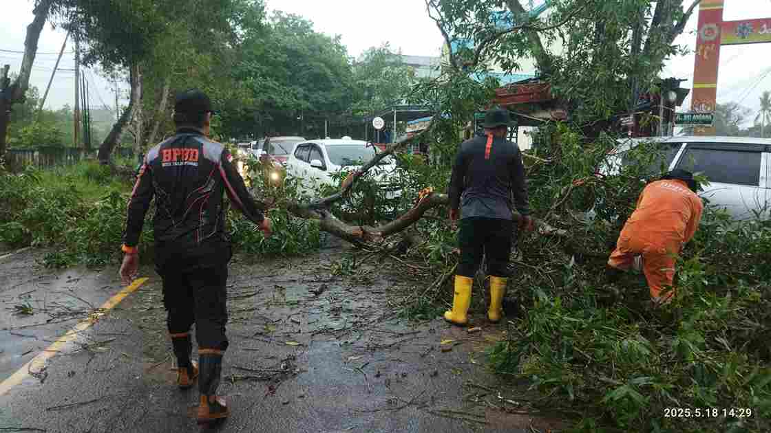 Sebelumnya, sejak pagi hingga pukul 12.00 WIB, tim BPBD juga melakukan mitigasi terhadap pohon-pohon kering yang rawan tumbang di sepanjang Jalan WR Supratman hingga ke perbatasan. (tc/Dinas Kominfo).