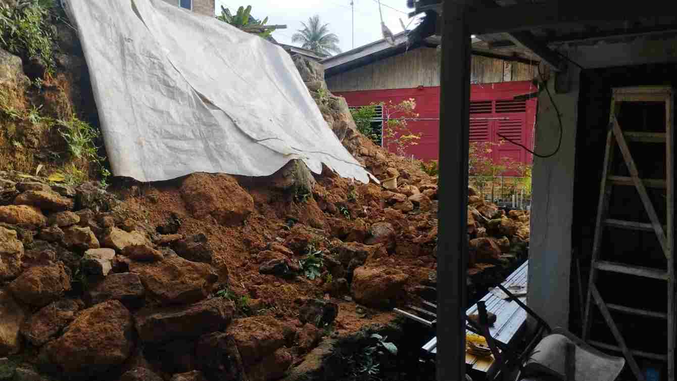 Sementara itu, Babinsa Kelurahan Kemboja, Sertu Nurdin Kama, yang turut meninjau lokasi bersama perangkat RT/RW, menyampaikan bahwa kondisi lereng masih berisiko runtuh apabila hujan deras kembali turun.