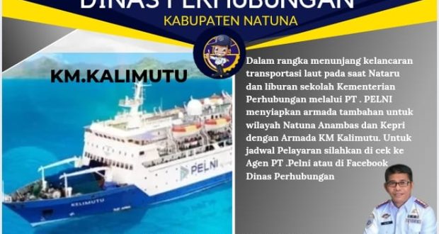Zonakepri.com– Menjelang Natal dan liburan tahun baru 2026, PT Pelayaran Nasional Indonesia (PELNI) mengoperasikan kapal motor (KM) Kalimutu sebagai armada pendukung kelancaran transportasi laut dari dan menuju wilayah Kabupaten Natuna.
