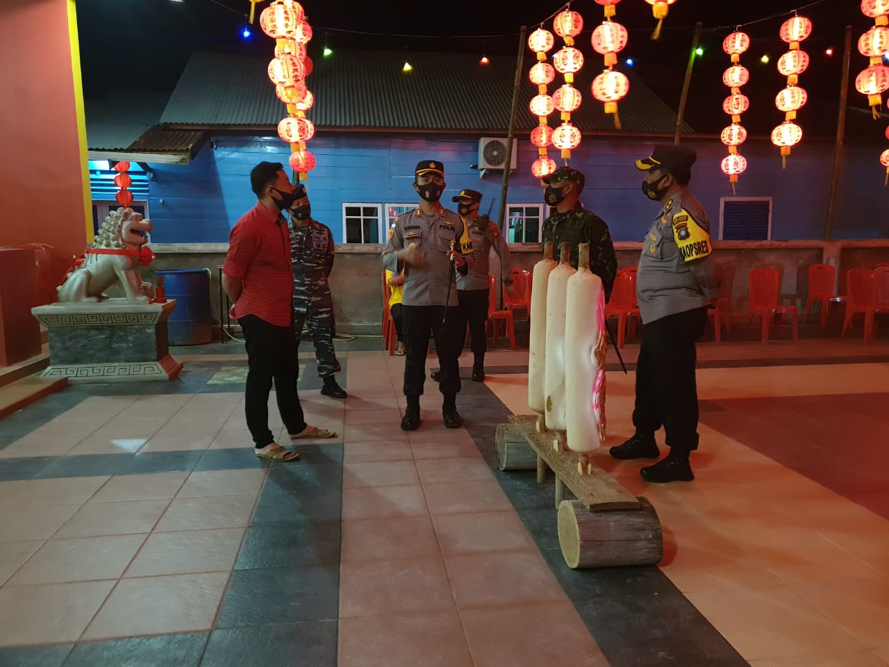 Natuna,Zonakepri-Kapolres Natuna bersama Dandim 0318/Natuna dan sejumlah Pejabat Utama Polres Natuna melaksanakan pengecekan kegiatan pengamanan malam penyambutan Tahun Baru Imlek 2572 di Klenteng Fuk De Chi yang beralamat di Pelantar Kampung Tua Penagi Kelurahan Bandarsyah, Kecamatan Bunguran Timur, Kamis malam 11 Februari 2021.