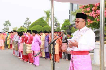 Walikota Tanjungpinang, H. Lis Darmansyah, SH membacakan naskah pidato Gubernur Provinsi Kepri. Mengawali sambutannya, Lis menyampaikan “kita tingkat kinerja dan pelayanan terhadap masyarakat sesuai dengan Tema HUT Kepri yang ke-13 ini,“tingkatkan semangat (AYO BEKERJA) untuk membangun Kepulauan Riau yang lebih maju”.