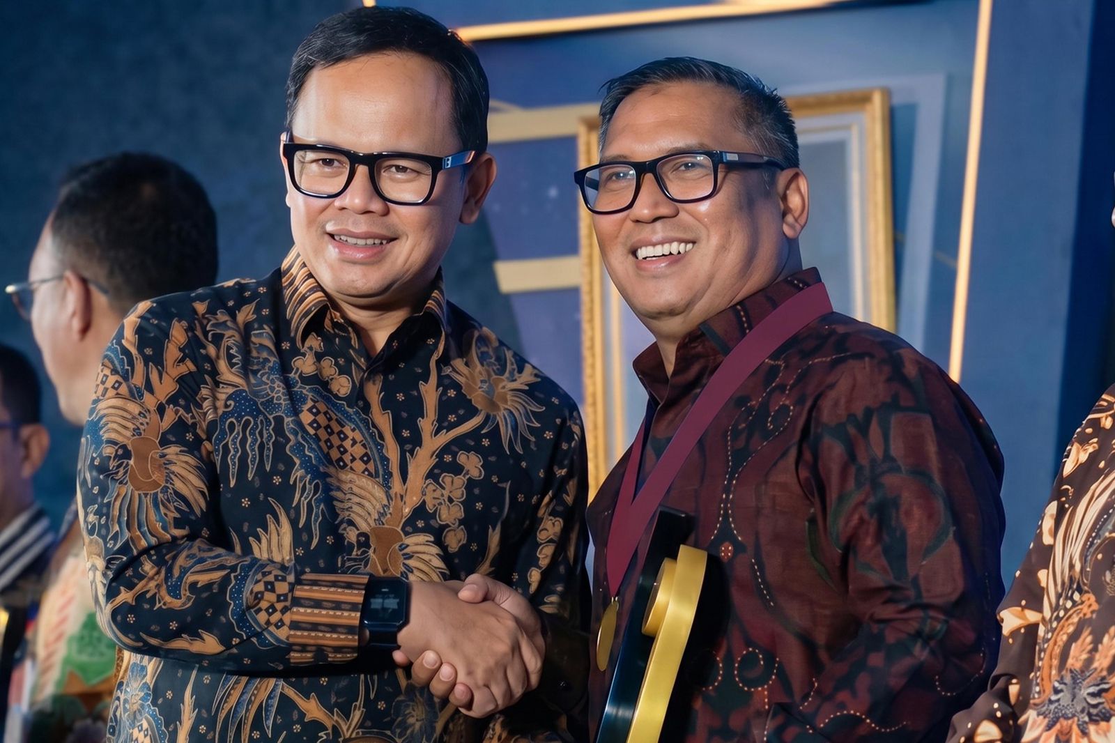 Penghargaan diterima oleh Wakil Gubernur Kepulauan Riau Nyanyang Haris Pratamura dan diserahkan oleh Menteri Dalam Negeri RI Muhammad Tito Karnavian bersama Wakil Menteri Dalam Negeri Bima Arya Sugiarto di Wyndham Opi Hotel Palembang, Sumatera Selatan, Minggu (26/4/2026).