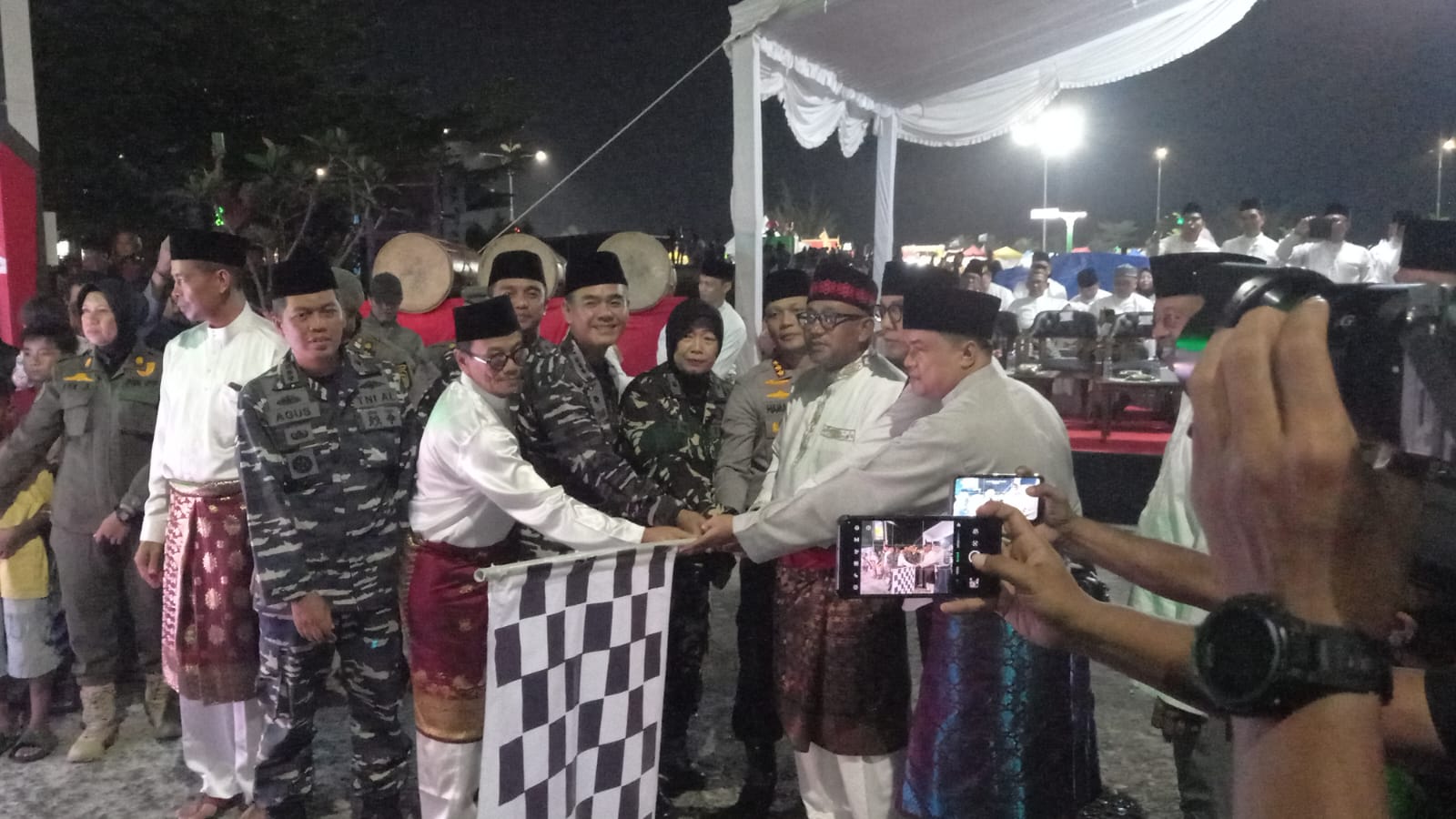 Zonakepri. Com- Ribuan warga Tanjungpinang memadati kawasan Tugu Sirih, tepi laut, untuk menyaksikan pawai takbir yang dilepas langsung oleh Wali Kota Tanjungpinang, Lis Darmansyah, didampingi Wakil Wali Kota Raja Ariza dan pimpinan Forkopimda, Minggu (30/3/2025) malam.