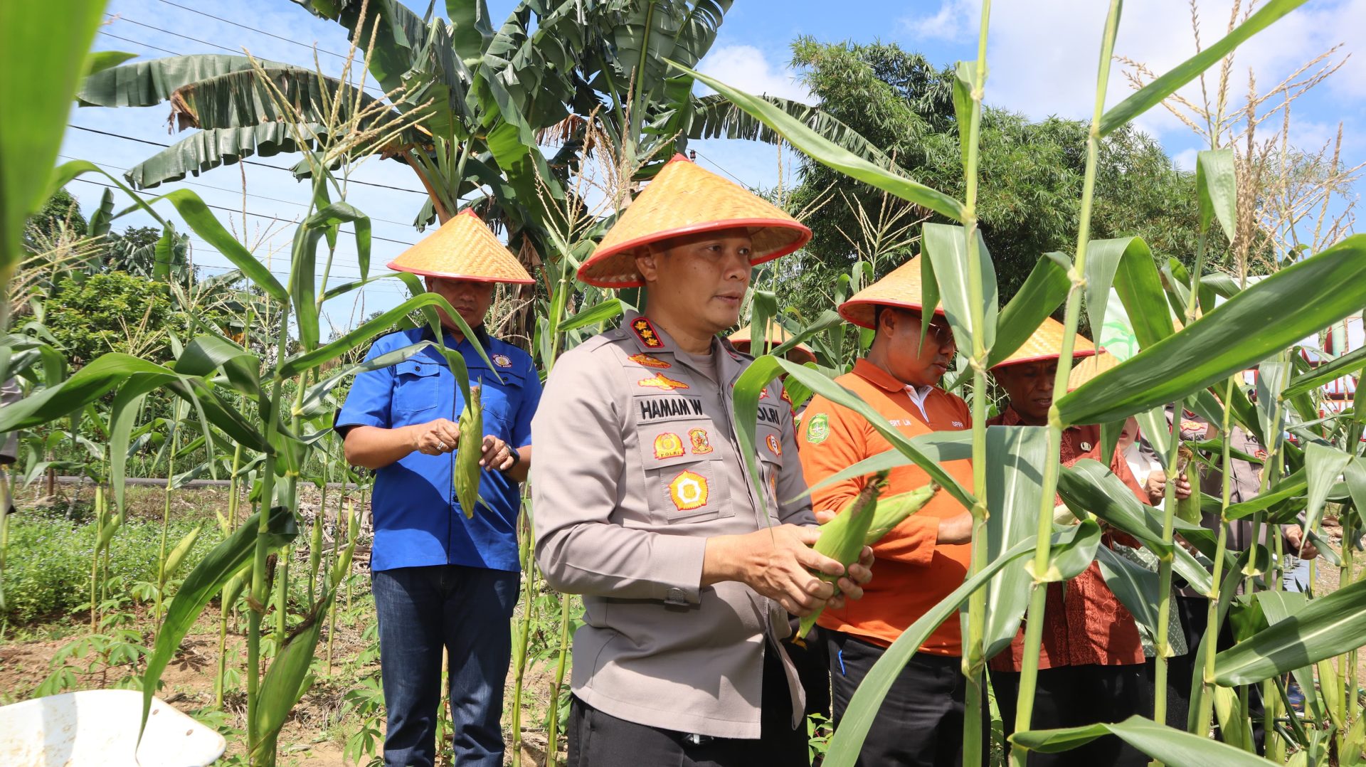 Zonakepri. Com-Polresta Tanjungpinang bersama kelompok tani maju jaya melaksanakan panen raya jagung guna mendukung swasembada pangan tahun 2025.