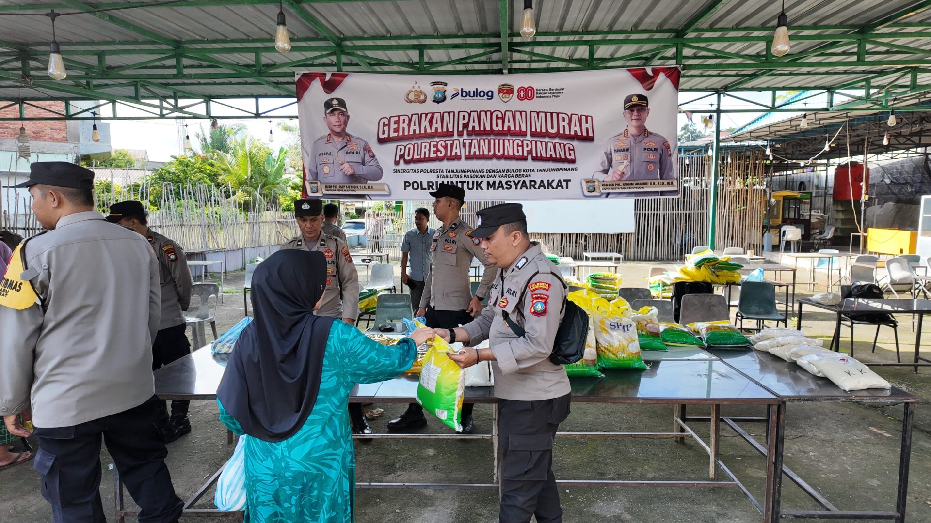 Diketahui, kegiatan ini diselenggarakan oleh Polresta Tanjungpinang bersama Polsek Tanjungpinang Barat dalam hal ini bekerja sama juga dengan Perum Bulog Kota Tanjungpinang.