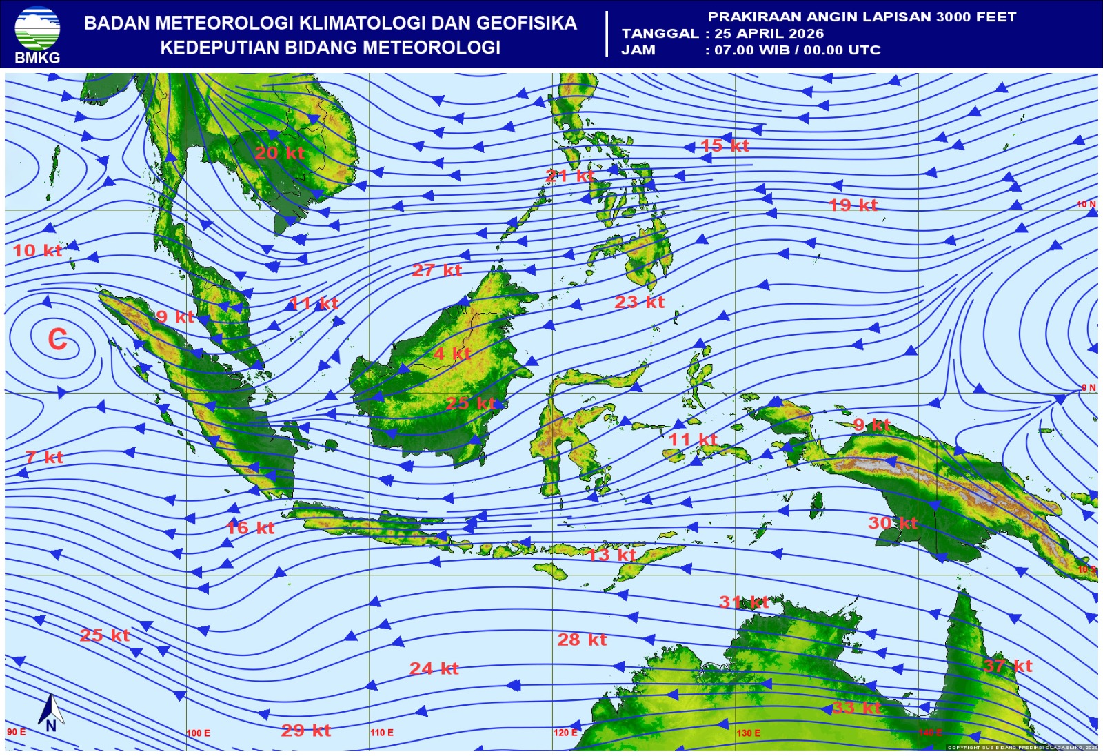 Sementara itu, prakiraan cuaca untuk seminggu kedepan mulai dari tanggal 25 April – 30 April 2026 diprakirakan secara umum berawan, namun masih terdapat potensi hujan ringan – sedang yang berskala lokal/ tidak merata terutama pada siang hari.