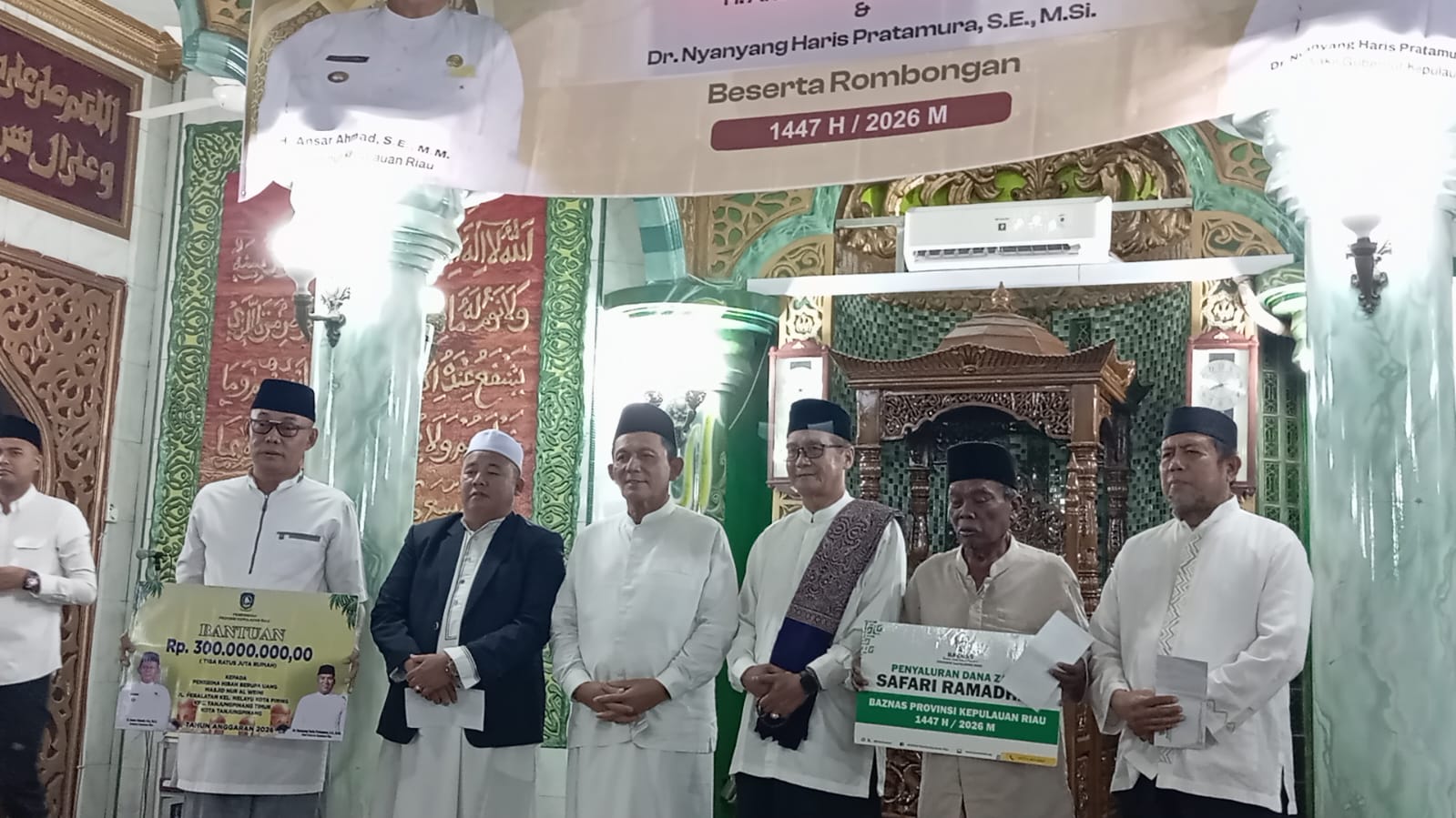 “Di Ramadan ini kita menyalurkan berbagai bantuan. Selain memberikan bantuan untuk masjid, sekaligus bersilaturahmi dengan masyarakat. Bantuan ini sebenarnya tertunda dua tahun yang lalu dan baru bisa kita realisasikan sekarang melalui APBD 2026,” ujar Ansar, Senin malam (2/3/2026).