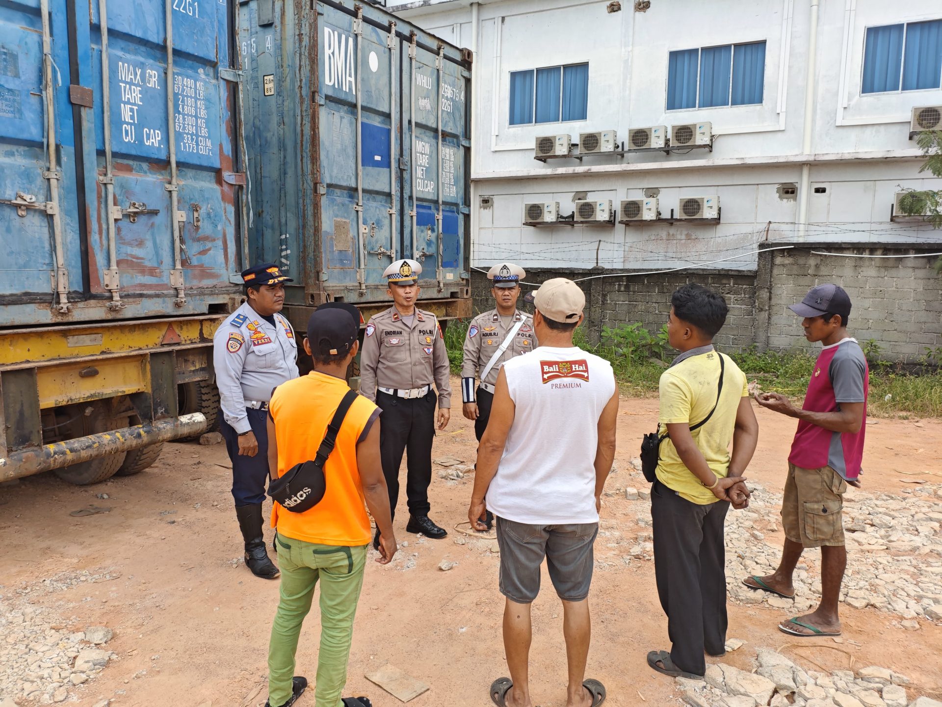 Personel Sat Lantas menghimbau kepada supir truck atau kendaraan berat agar senantiasa memeriksa kendaraannya sebelum melakukan perjalanan.