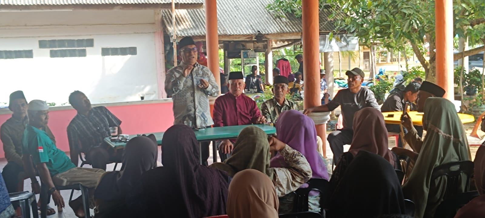 Pertemuan digelar dengan nuansa kekeluargaan, silaturahmi dengan suguhan kopi dan teh tradisional. Hujan lebat tidak menyurutkan semangat warga dari berbagai kampung untuk datang menghadiri. Barisan meja panjang dan kursi-kursi mulai terpenuhi. Harapan terhadap peningkatan akses kesehatan, pendidikan dan nelayan juga turut disampaikan warga.